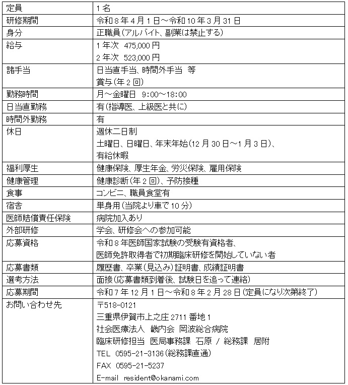 令和8年度初期臨床研修医募集要項および待遇